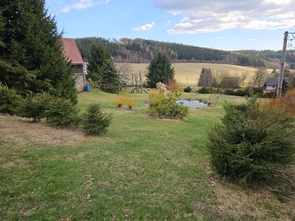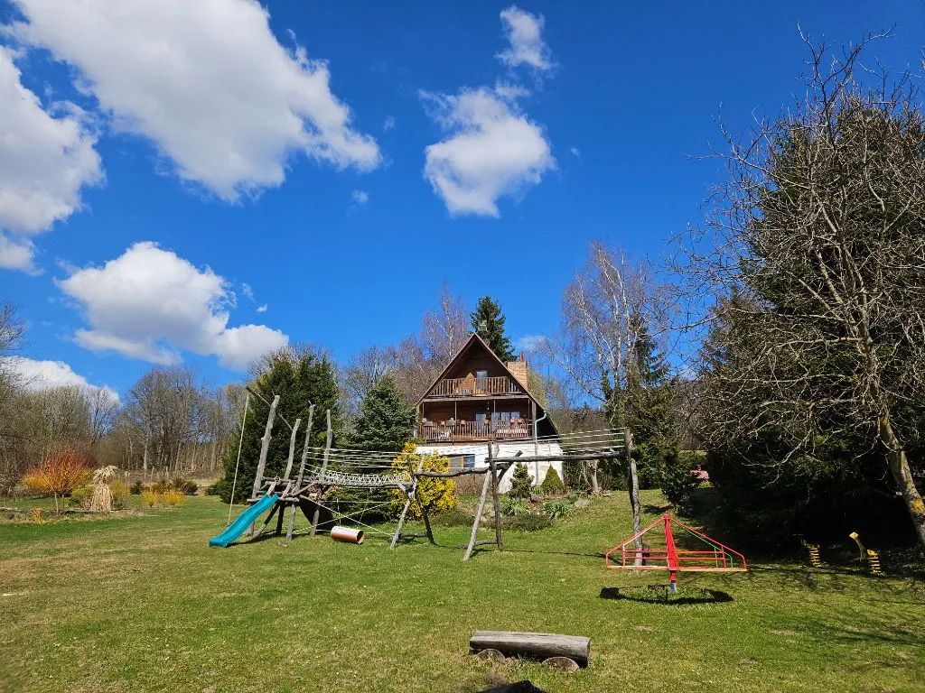 U chaty zahradní posezení, ohniště, udírna, pískoviště, dětské hřiště (prolézačky, skluzavka, houpačky, kolotoč,..) venkovní sprcha.