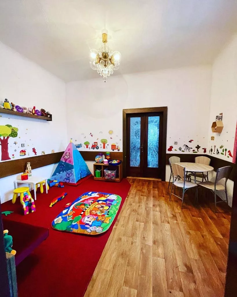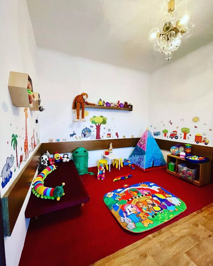 Mezi kuchyní a společenskou místností se nachází nově zrenovovaná dětská herna.