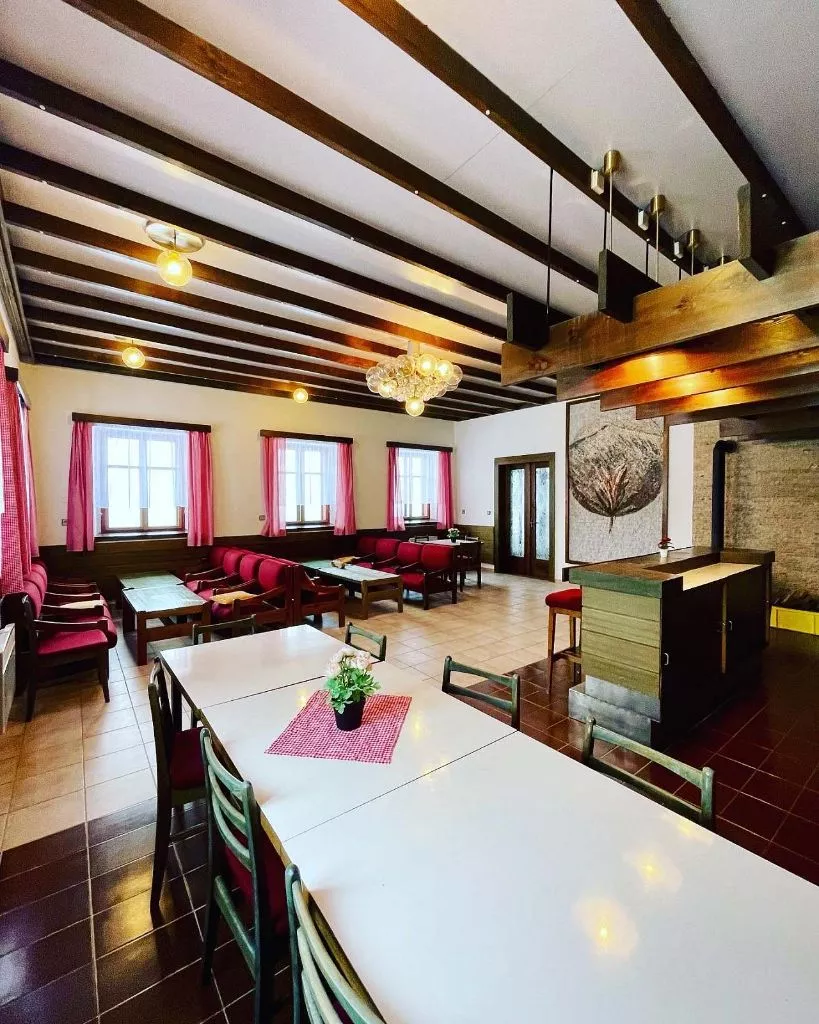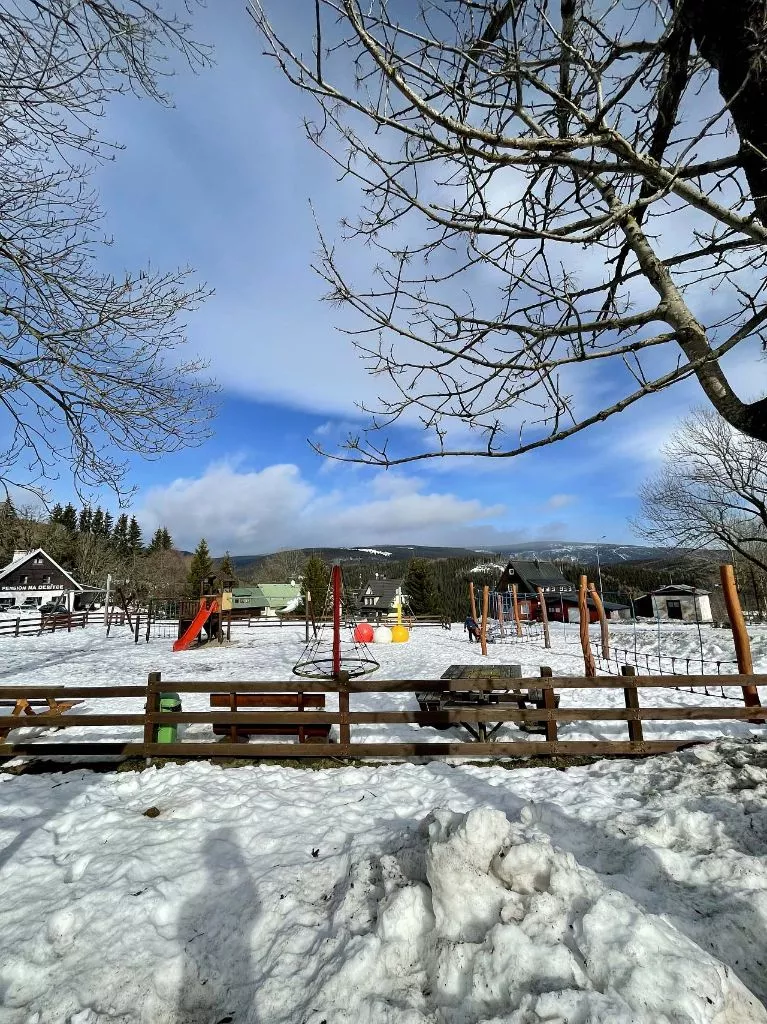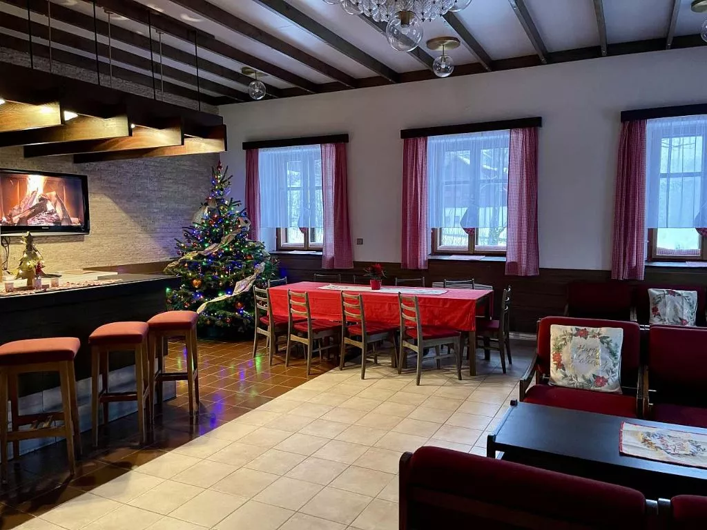 K dispozici je velkoryse řešená společenská místnost s vlastním barem a krbem. Na slunečné terase si můžete vychutnat nádherný západ slunce s výhledem na vrcholky Krkonoš. Pro děti máme nově vybavenou dětskou hernu kde si užijí spoustu zábavy.