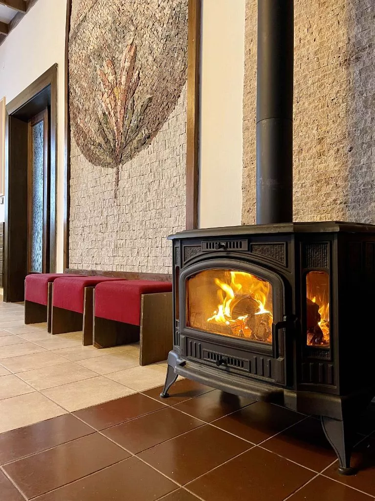 Ve společenské místnosti se nachází velký bar s příjemným krbem a velkorysým posezením.