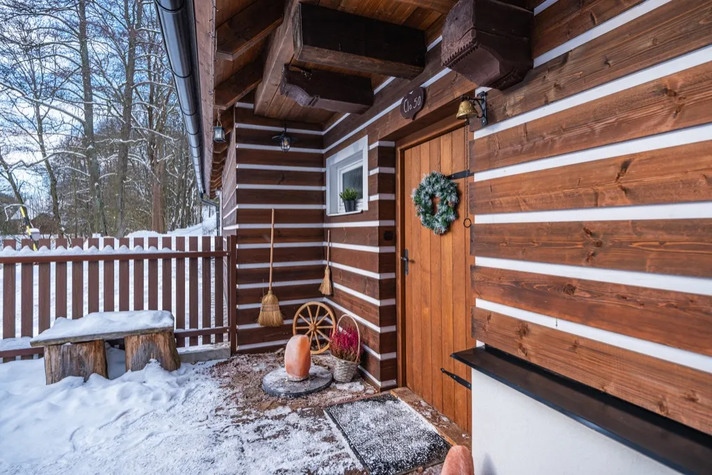 Pronajměte si luxusní roubenku se saunou a vířivkou v Krkonošském podhůří v obci Stará Paka – Ústí. Naše roubenka prošla kompletní rekonstrukcí, která byla dokončena na začátku roku 2024. V chalupě můžete vidět kombinaci zachovaných původních kamenných zdí spolu s moderními prvky, které přispívají ke komfortu návštěvníků, jako je například podlahové topení v celé chalupě včetně vytápění a ohřevu teplé vody pomocí tepelného čerpadla. Naše luxusně vybavená roubenka nabízí nadstandardní ubytování a je postavena u klidné říčky Popelky, jež Vám případně díky vybudovanému vstupu po dřevěných schodech poskytne osvěžení po saunování či při horkých letních dnech. Také můžete večer posedět na zápraží a jen tak se zaposlouchat do krásného šumění říčky tekoucí před chalupou. Chalupa je vybavena venkovní saunou a pro Vaši relaxaci také venkovní vířivkou pro až 6 osob. Přímo z vířivky můžete sledovat venkovní širokoúhlou televizi a je jen na vás, zda zvolíte romantický film a vychutnáte si relax se šampaňským v ruce, a nebo budete s kamarády a vychlazeným pivem natočeným přímo ze sudu pomocí naší pípy sledovat sportovní zápas. Pokud budete chtít, můžete si zatopit v kachlové peci, na které mohou ti zdatnější případně i něco uvařit. Kdo by si troufl, může v peci upéct něco dobrého a vyzkoušet si tak, jak pekly dřív naše prabáby.