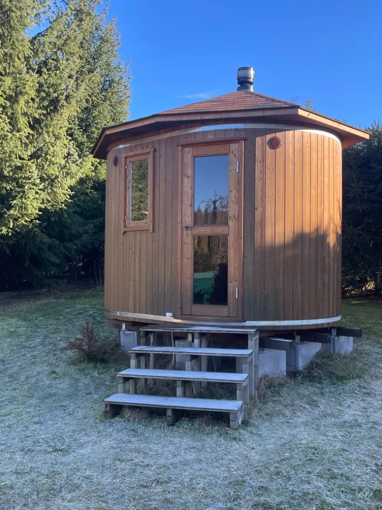Součástí zahrady, kterou mají hosté k dispozici pro různé hry je Finská sauna.