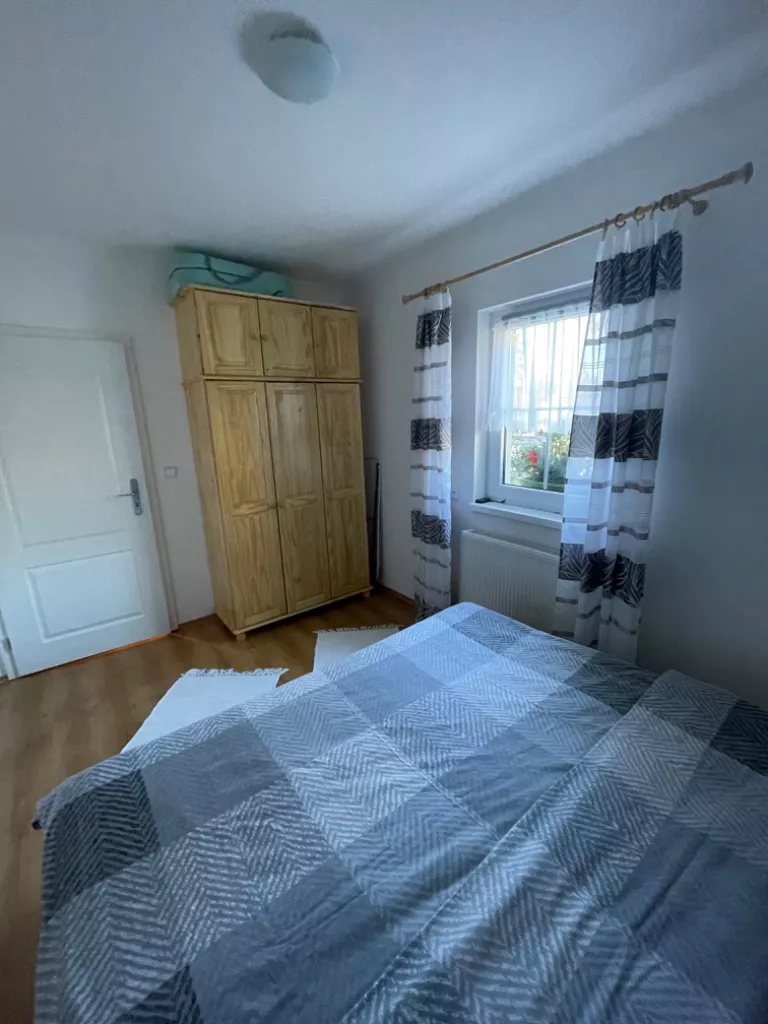 V obývacím koutě se nachází rozkládací gauč, televize a komoda. Ložnice disponuje manželskou postelí a šatní skříní.