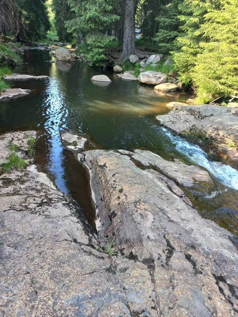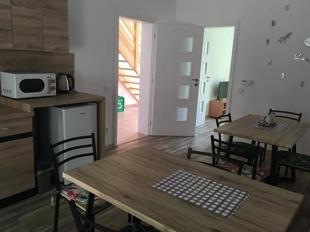 Každý apartmán má vlastní sprchový kout s umyvadlem a dvě WC. Apartmány jsou cca 50m od lesa a říčky Černé.