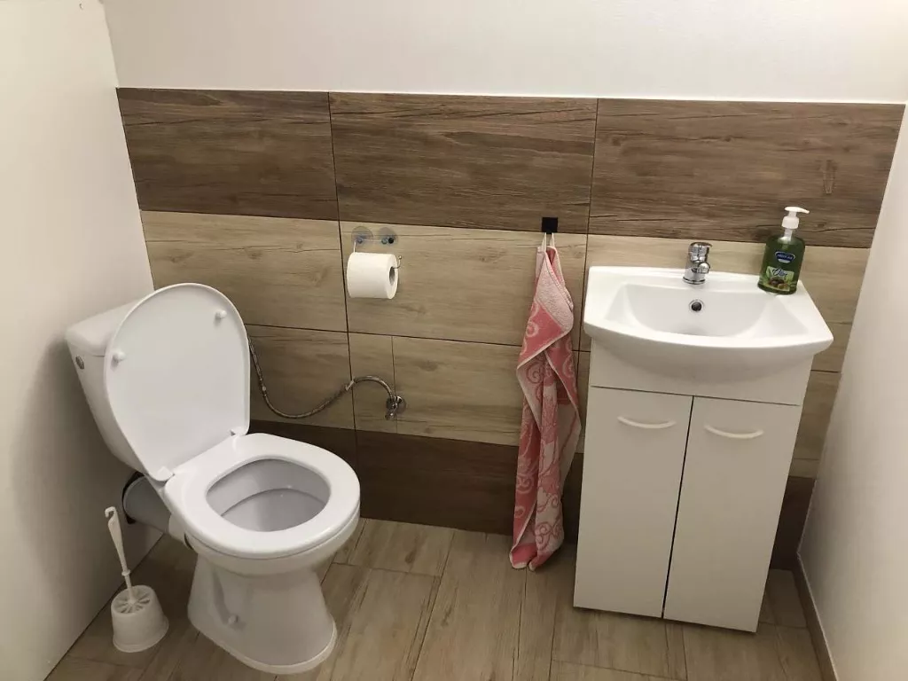 Na každém patře apartmánu je k dispozici WC, v přízemí pak i sprchový kout. Ručníky jsou samozřejmostí.