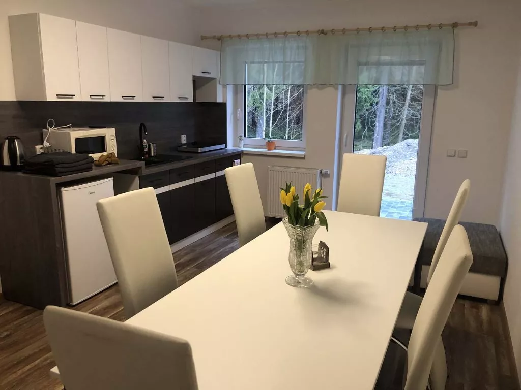 Nabízíme ubytování v nových apartmánech (kolaudace leden 2023) mimo hlavní ruch, v obci Potůčky.