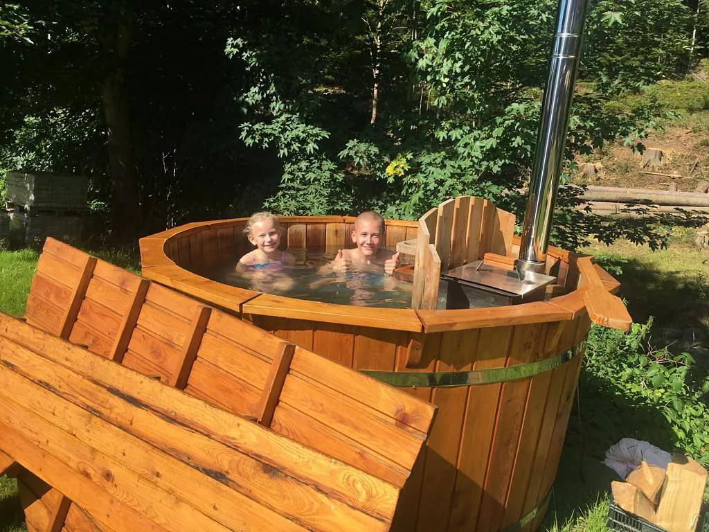 Plně vybavené kuchyně, dvakrát WC pro každý apartmán + sprchový kout. Televize, koupací sud, WI - FI, terasa s ohništěm, uzamykatelný zahradní domek pro uložení sportovního vybavení.