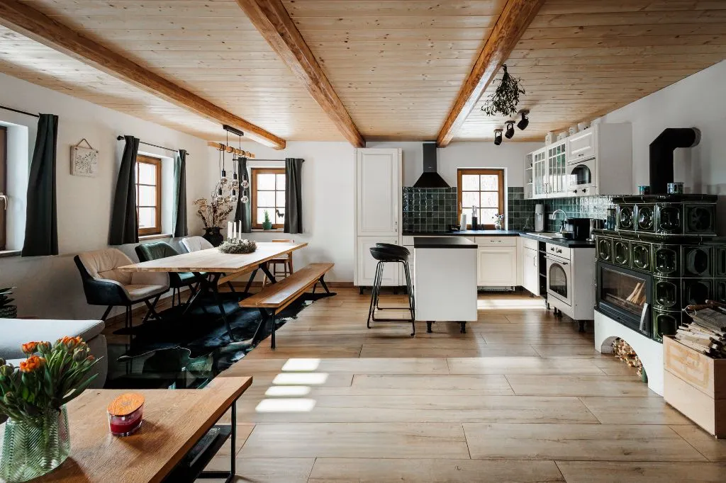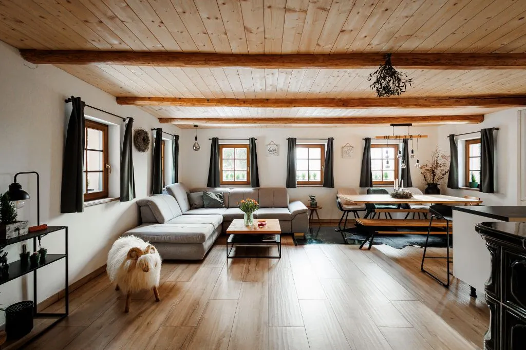 Interiér chalupy je komfortně a designově vybaven. Exteriér chalupy je stále v rekonstrukci.