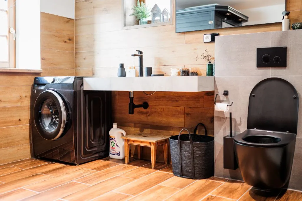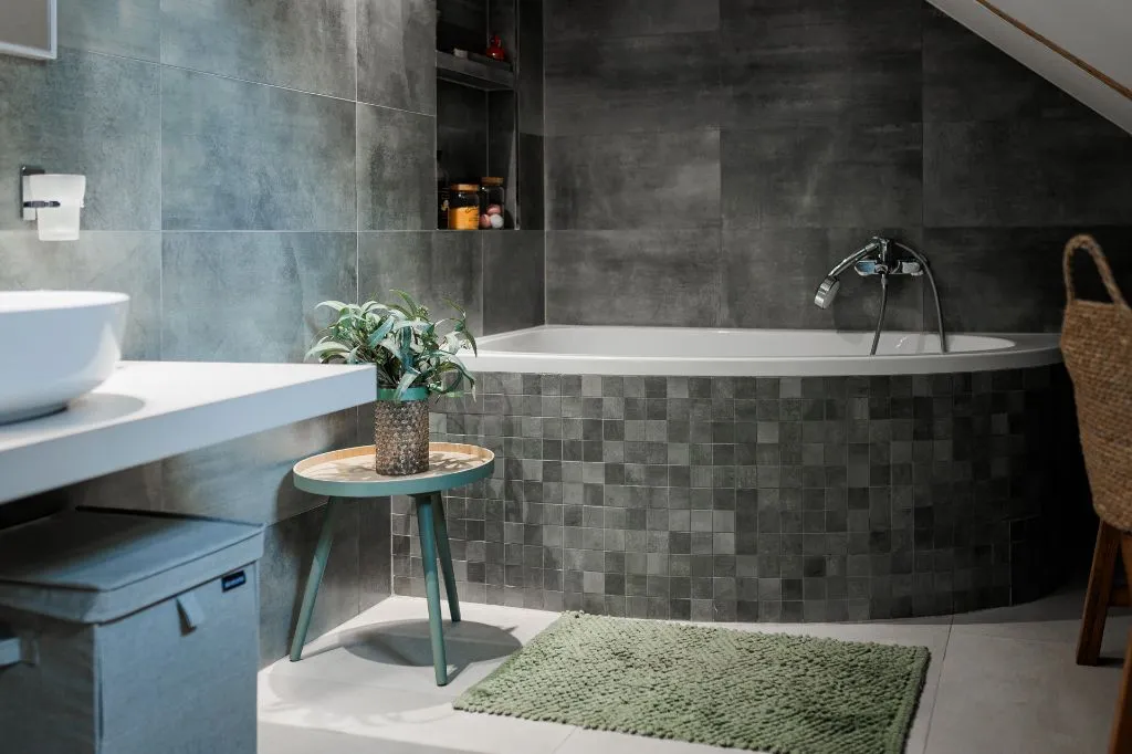 Nechybí ani obývák s knihovnou, TV a playstation, kuchyňská linka s lednicí, kávovarem a varnou konvicí a koupelna s vanou a WC.