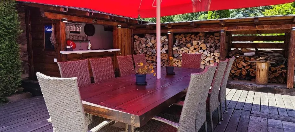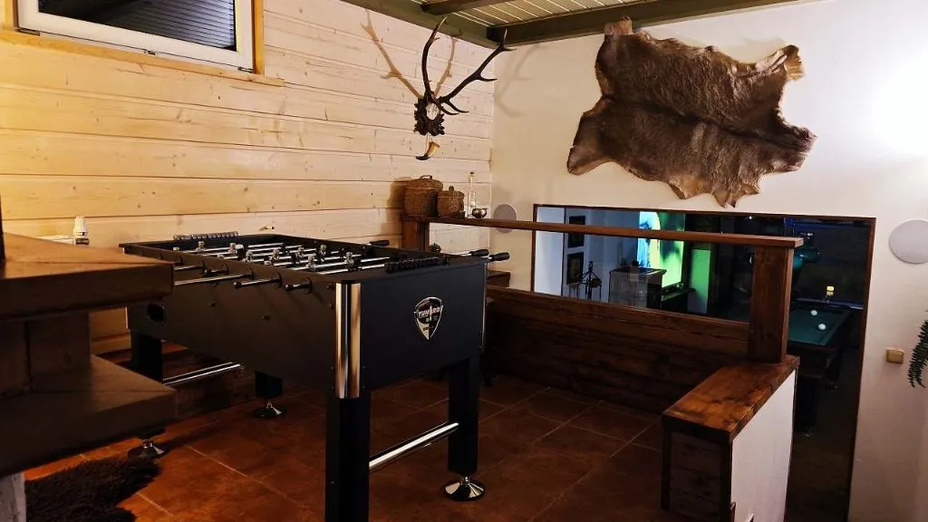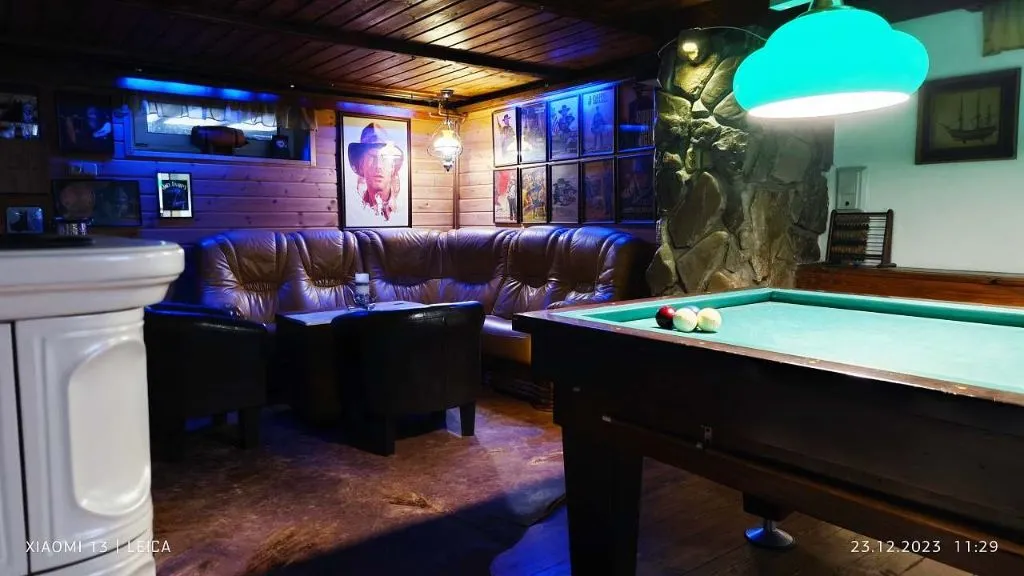 Samostatná stylová místnost s kulečníkem a barem s možnosti čepování Piva. Sauna (finská) pro 4 osob a sprchou na osvěžení.