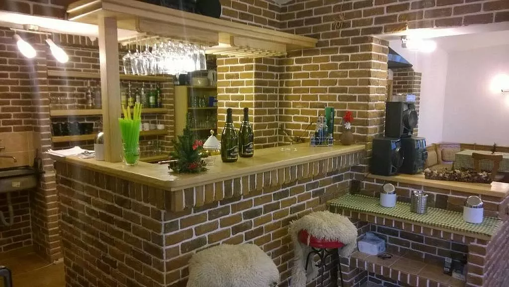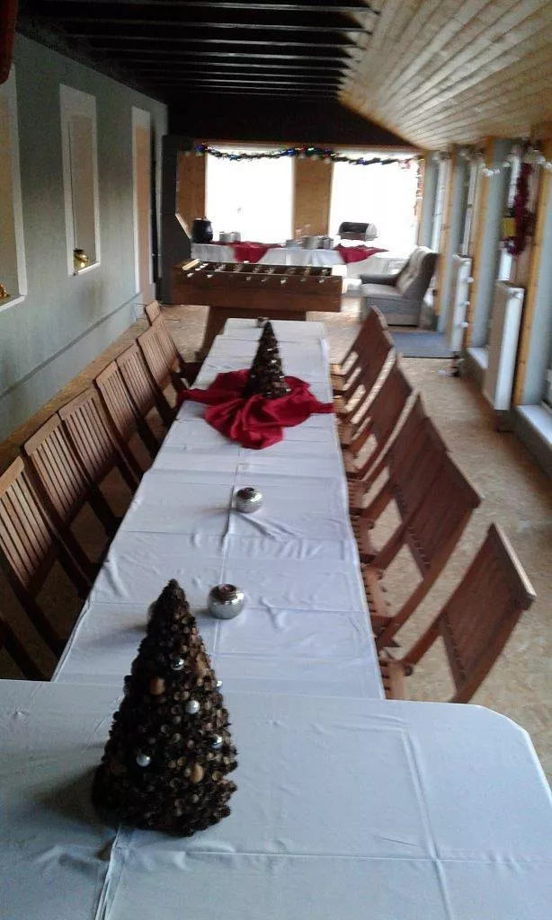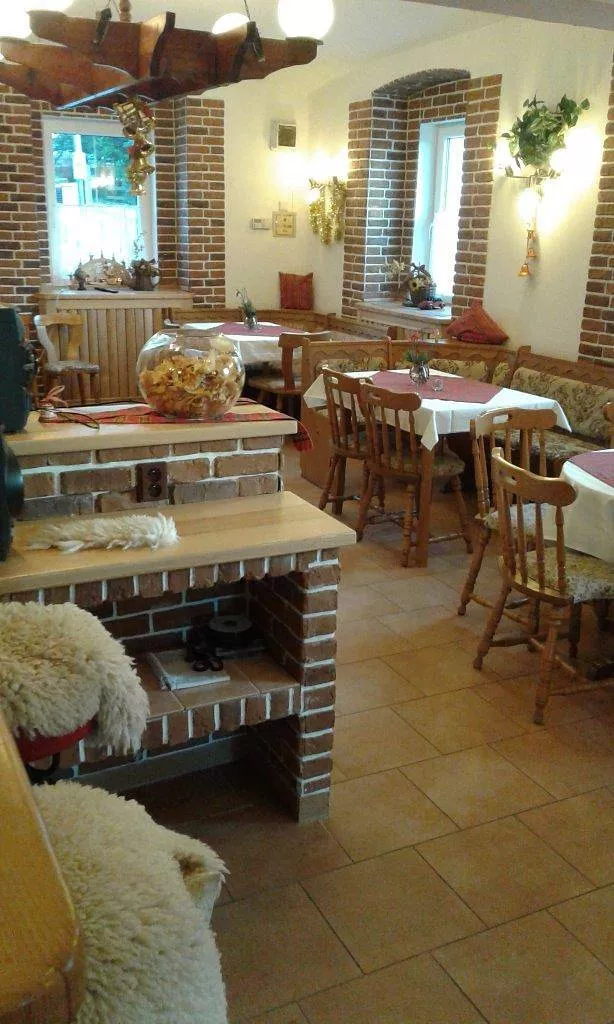 Společenská místnost - televize, krbová kamna, bar s výčepem (možnost objednaní sudů s pivem).