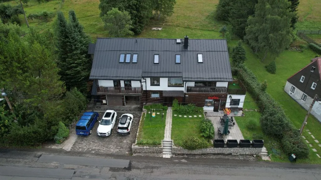 Leží 50m od moderních sjezdovek Velflink, při cyklistických a turistických trasách.
